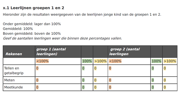 Heb je streefdoelen voor jouw klas bepaald? Denk na over wat je graag wilt bereiken. Hoeveel leerlingen moeten 100% van de doelen afgevinkt hebben, en van hoeveel verwacht je dat ze al verder zijn? Gebruik hiervoor het overzicht in ParnasSys. Werk je met MijnSchoolplan? Gebruik dan onze nieuwe tool voor het analyseren van de onderbouw. Gebruik je MijnSchoolplan niet, dan kun je ons Word-document gebruiken.